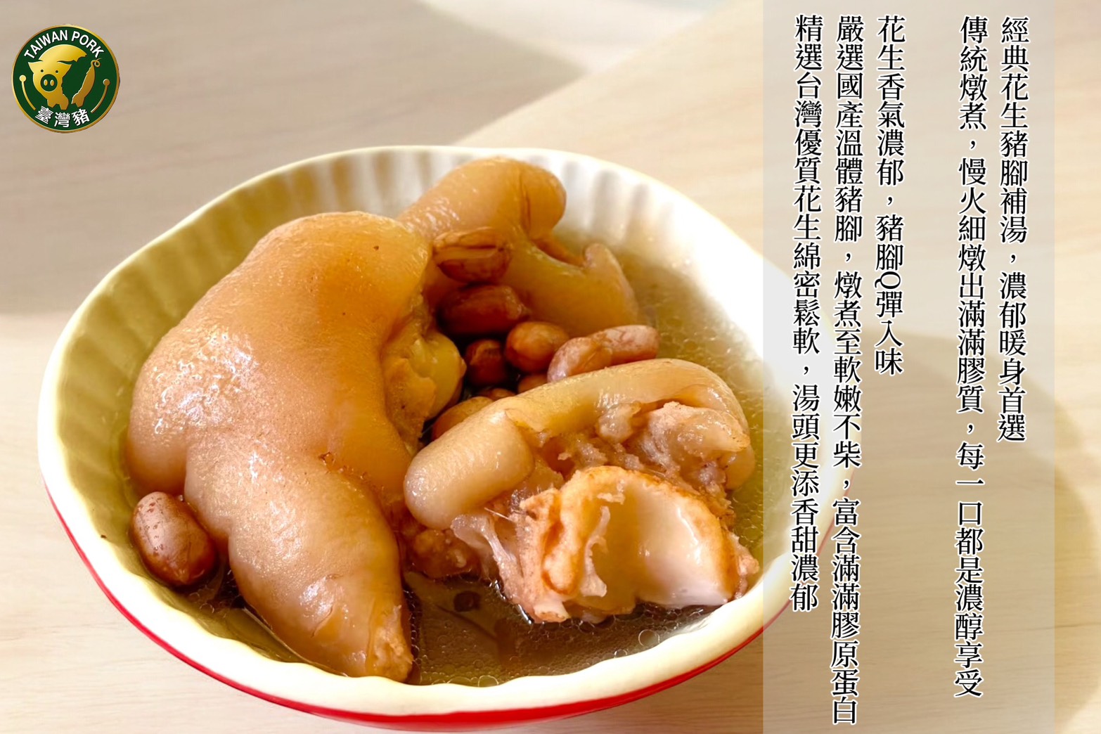 :水、溫體豬腳(台灣)、花生、米酒、薑、醬油、鹽、糖、當歸、黃耆、川芎、L-麩酸鈉(味精)